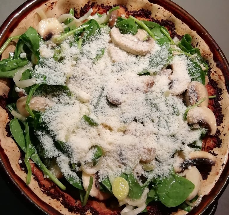 Összekeverjük a megmosott, pucolt, apróra vágott zöldségeket a tojásokkal és fehérjékkel, a "tésztára" öntjük és addig sütjük tovább amíg a tojás meg nem szilárdul rajta. Akinek belefér, parmezánnal (esetleg helyette sörélesztővel) megszórva tálalja. Szerintem isteni :)